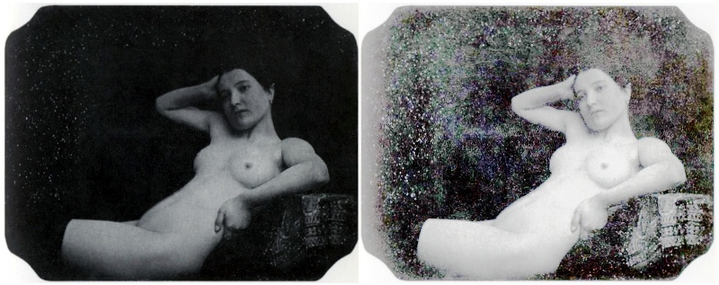 5. Во Всемирной информационной сети широко распространено мнение, что первой эротической фотографией является дагерротип Феликса-Жака Мулена, созданный в 1850 году (рис. 4 справа). В лучшем случае авторство и дата его создания указываются верно [14, 15], но довольно часто датой его создания считают 1839 год [16, 17] 10.